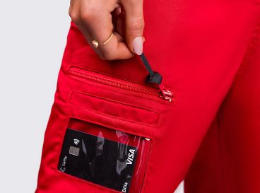 - Ärmficka med dragkedja – perfekt för kort eller snabb betalning med NFC